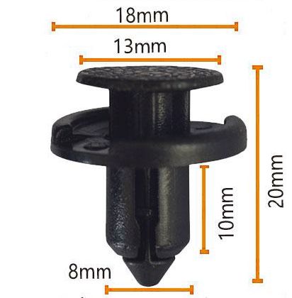 کلیپ اتومبیل دارای قطر بالای 18 میلی متر ، قطر پایین 13 میلی متر ، طول 20 میلی متر و ضخامت جانبی 8 میلی متر است.